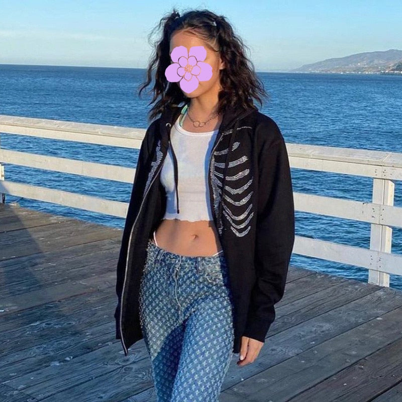 Rhinestone Skeleton Womens Hoodies